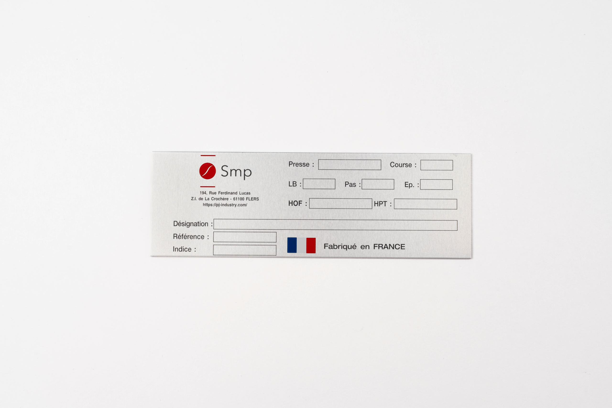 Une plaque constructeur est une plaque fixée sur un équipement, un véhicule ou une machine, qui contient des informations essentielles sur le produit et son fabricant, telles que les caractéristiques techniques de l’équipement, les coordonnées du fabricant et parfois le logo CE. Ces plaques sont généralement en aluminium ou acier inoxydable et sont placées à un endroit bien visible de l’équipement.